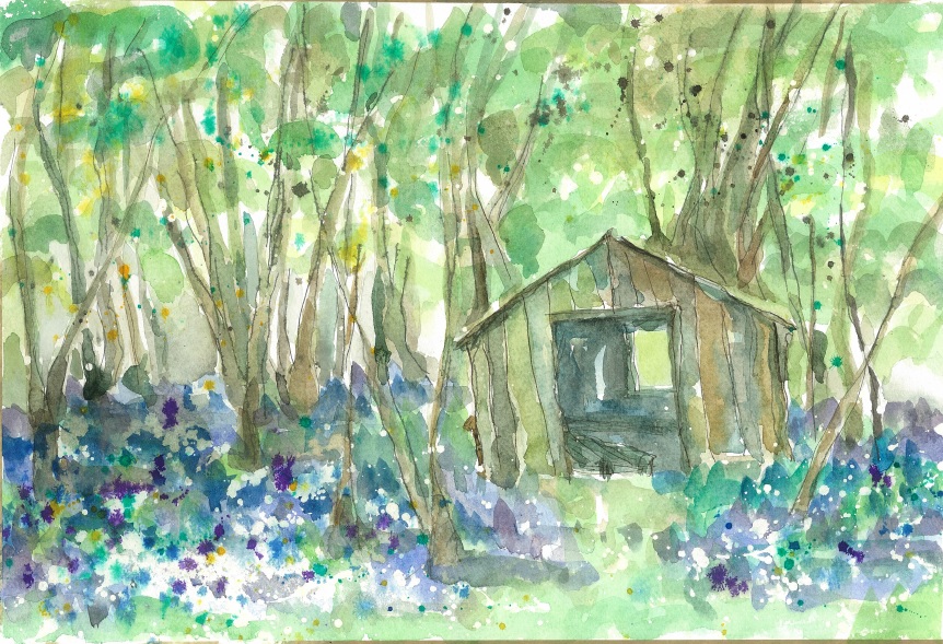 An abandoned hut in the bluebell woods.