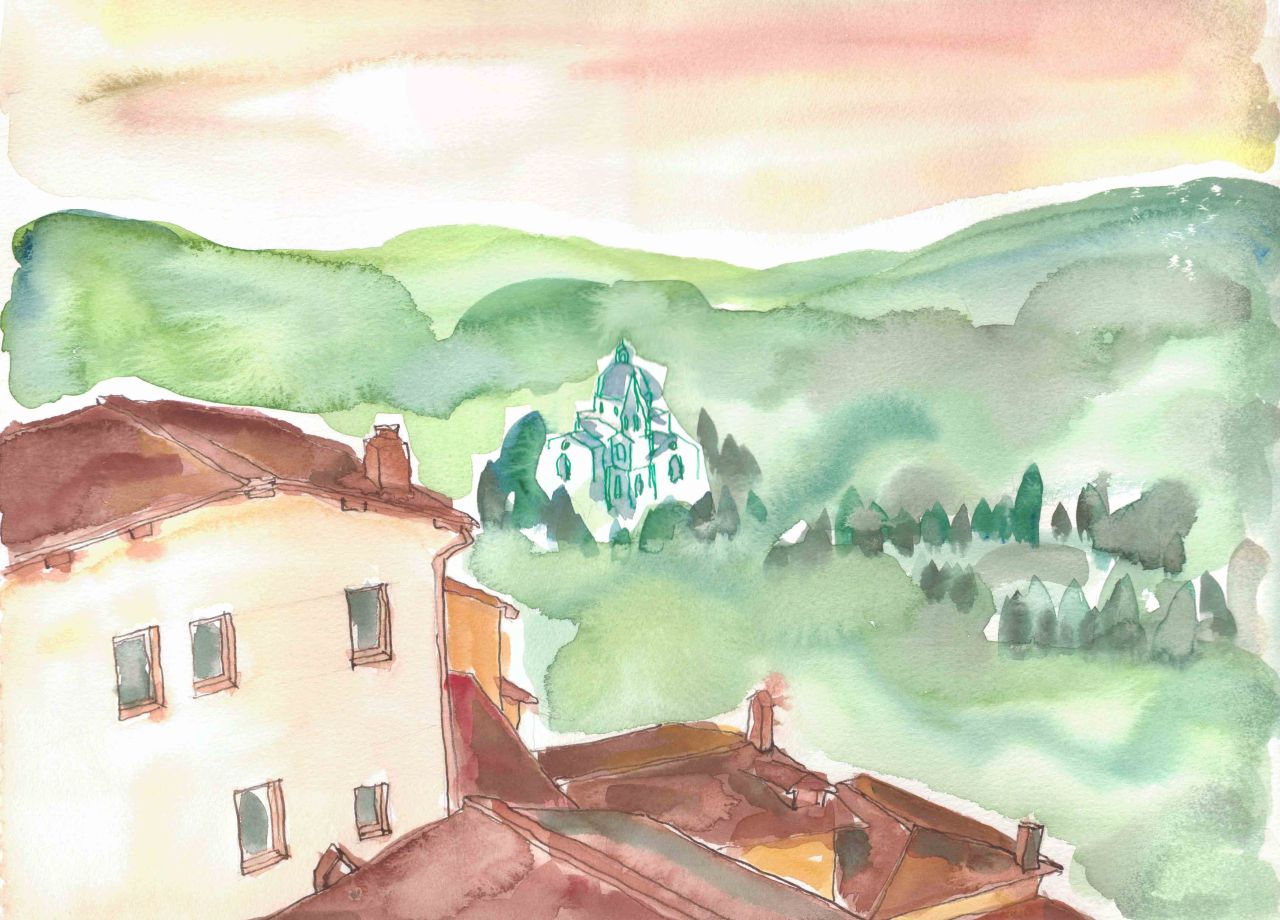 Watercolour and ink on watercolour paper. Original is 30cm by 40cm.